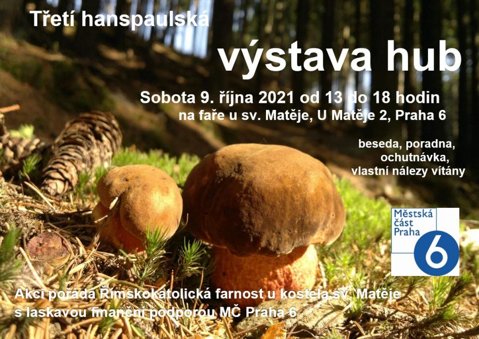 Srdečně zveme všechny houbaře a přátele přírody na 3. hanspaulskou výstavu hub, která se bude konat 9. října 2021 v prostorách fary U Matěje 2, Praha 6. Vstup volný.