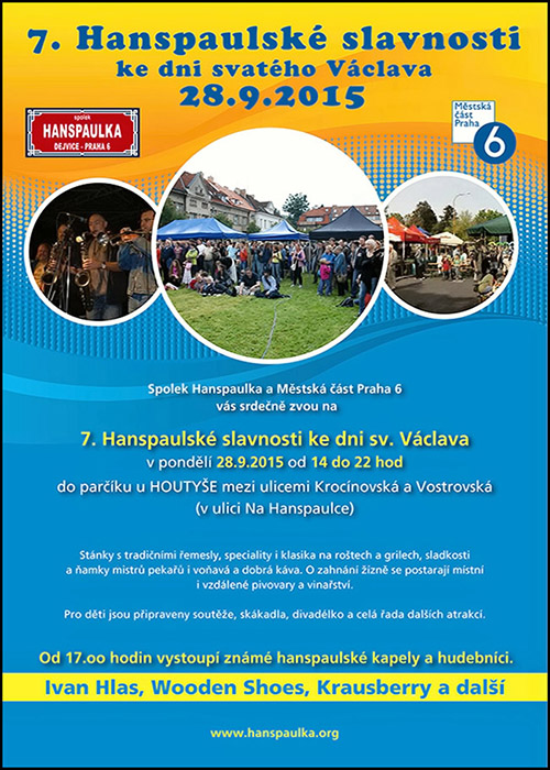 Již posedmé se sejdeme na Hanspaulce (v parčíku u „Houtyše“ mezi ulicemi Krocínovská a Vostrovská, v ulici Na Hanspaulce), abychom se v době od 14 do 22 hodin setkali se svými sousedy, užili si i s dětmi pestrý program a poslechli si dobrou muziku.