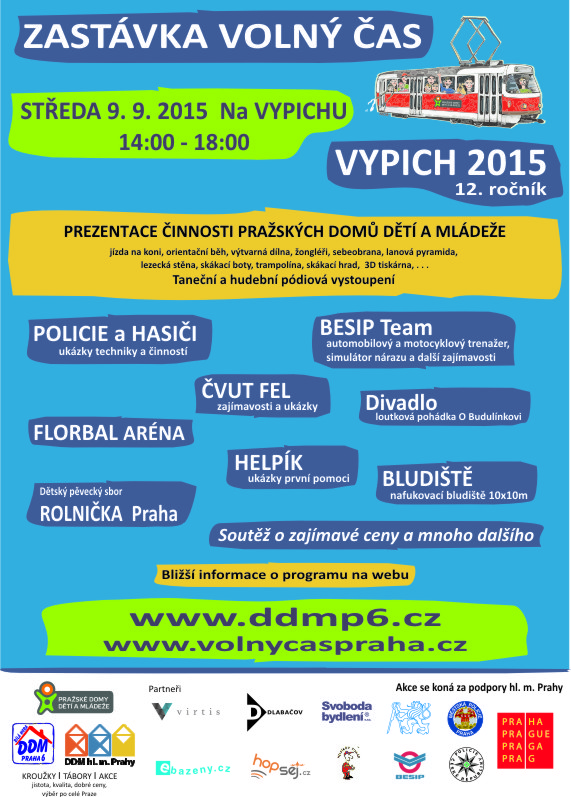 Kdy: 09.09.2015 od 14:00 do 18:00 • Kde: Dopravní hřiště DDM na Vypichu u obory Hvězda • Oblast: Sport a volnočasové aktivity • Pořadatel: Dům dětí a mládeže Praha 6 • Další informace: http://www.ddmp6.cz