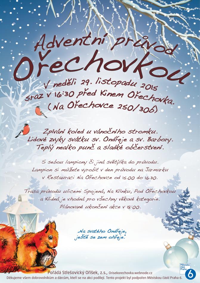 Druhý ročník Adventního průvodu Ořechovkou proběhne v neděli 29.11.2015. Průvod vyrazí v 16.30 od bývalého Kina Ořechovka.
