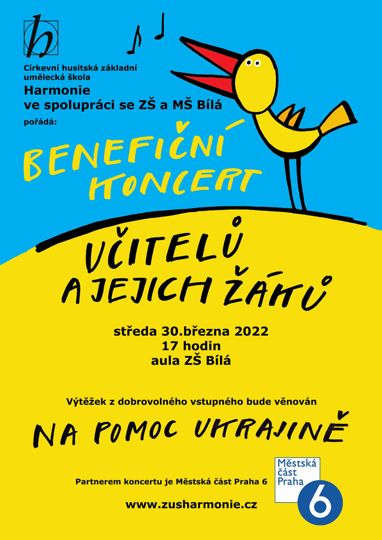 Pořádá Církevní husitská základní umělecká škola Harmonie ve spolupráci se ZŠ a MŠ Bílá v aule základní školy. Výtěžek z dobrovolného vstupného bude věnován na pomoc Ukrajině.