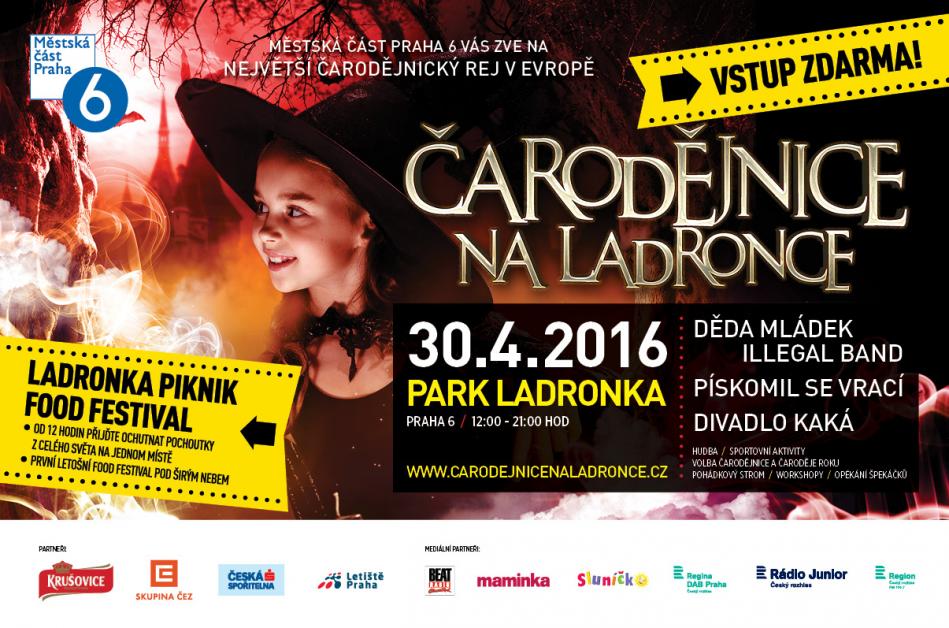 Městská část Praha 6 pořádá letos už 11. ročník Čarodějnic na Ladronce, dlouhodobě nejoblíbenějšího pálení čarodějnic u nás. Program zahrnuje koncerty, divadelní vystoupení, výtvarné a sportovní dílny, spousty masek, opékání špekáčků nebo řadu soutěží. Vstup je pro všechny zdarma.