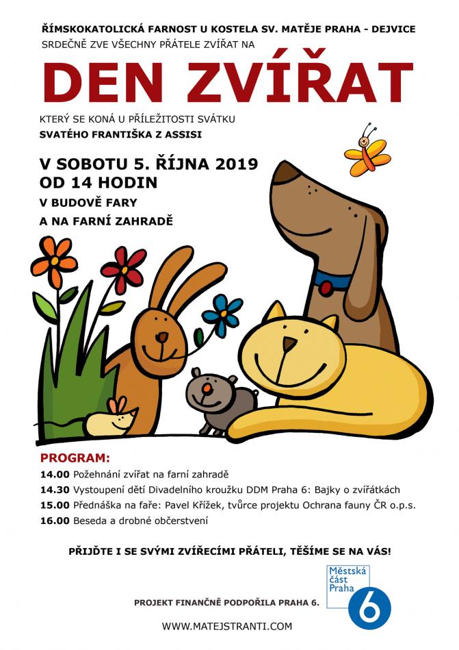Akce pro milovníky zvířat spojená s duchovním obřadem, dětským divadlem, přednáškou, besedou a drobným pohoštěním. Přijďte i se svými zvířátky!