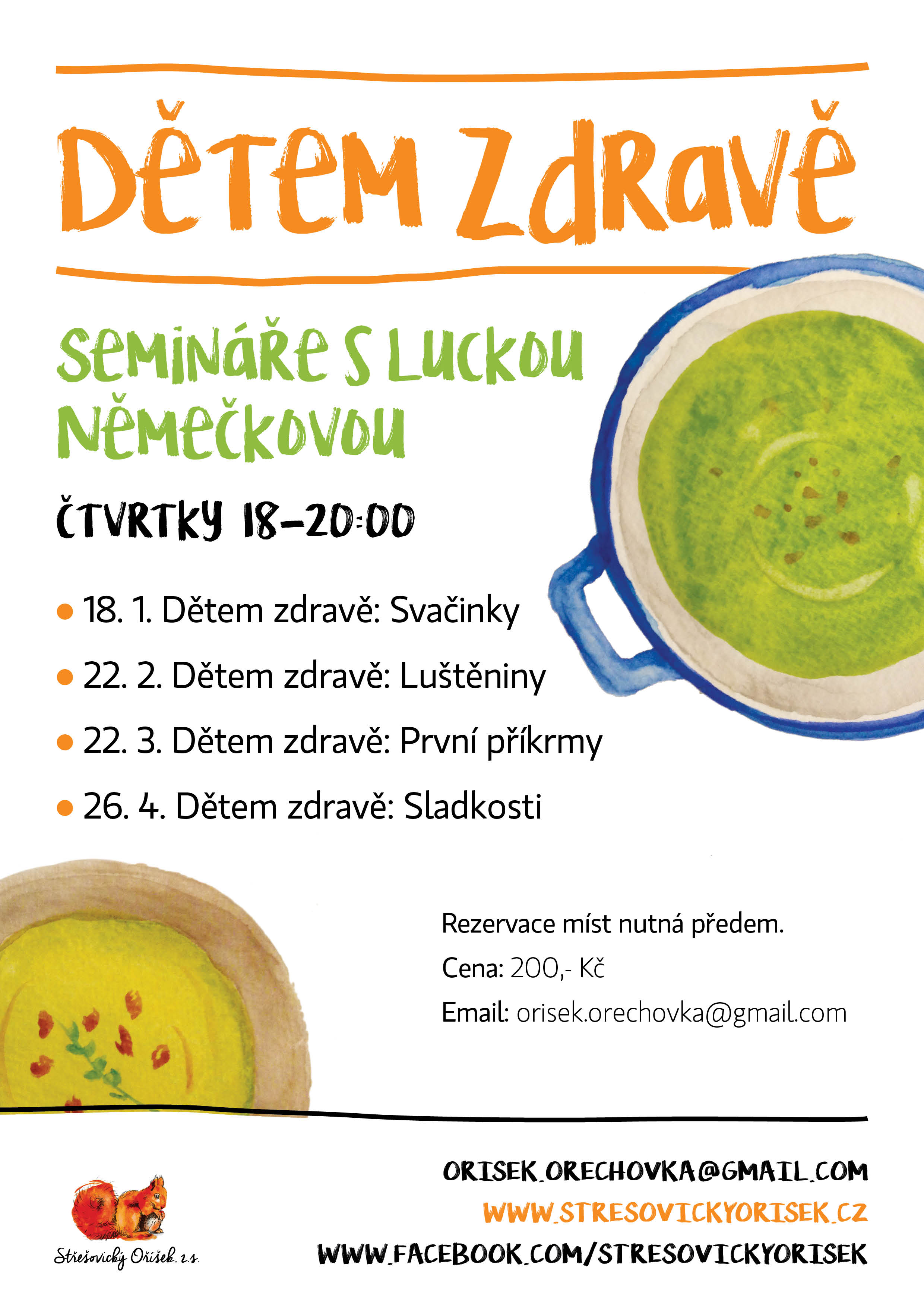 Lucka Němečková s Vámi na semináři probere jak vařit jednoduše, rychle a zdravě. Jak poznat, jestli má dítě v jídelníčku všechny živiny? Jak vybírat potraviny pro děti v obchodech, či nahradit potraviny u alergií?
