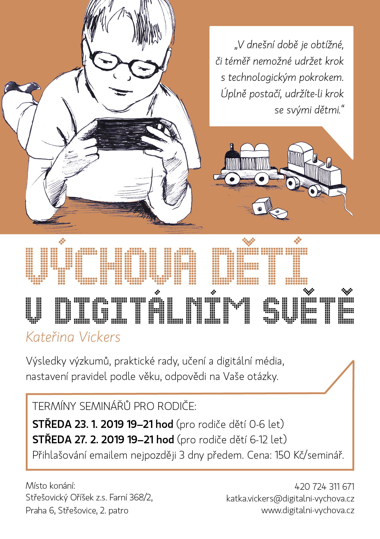 V rámci tohoto semináře bych Vám ráda pomohla s vyřešením otázek ohledně zacházení Vašich dětí s digitálními médii. Kdy je moje dítě připravené na mobilní telefon? Má smysl používat internetové filtry a rodičovské kontrolní nastavení? Kdy začít se sociálními médii? Jaký postoj mám zaujmout k hraní počítačových her? Seznámím Vás s rodinou mediální smlouvou a dalšími triky, která Vaší rodině umožní stát se aktivním tvůrcem mediálního prostředí.
