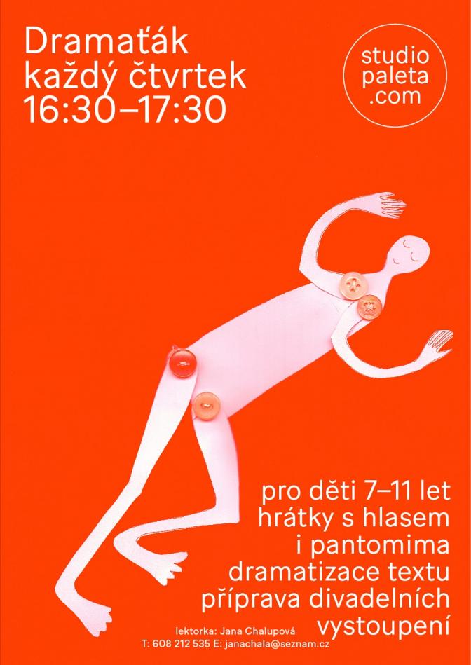 Od září otevírá naše studio dramatický kroužek. Pod vedením zkušené lektorky se naučíte pracovat s hlasem, zahrajete si pantomimu a připravíte i divadelní vystoupení. Kroužek je určen dětem od 7 do 11 let. Neváhejte a navštivte nás, každý čtvrtek v odpoledních hodinách ve Studiu Paleta.