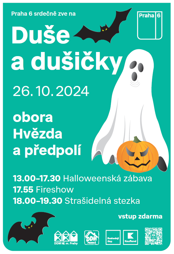 MČ Praha 6 zve všechny děti a rodiče na tradiční zábavnou akci Duše a dušičky. Již 9. ročník se uskuteční v areálu obory Hvězda a na jejím předpolí. VSTUP ZDARMA.