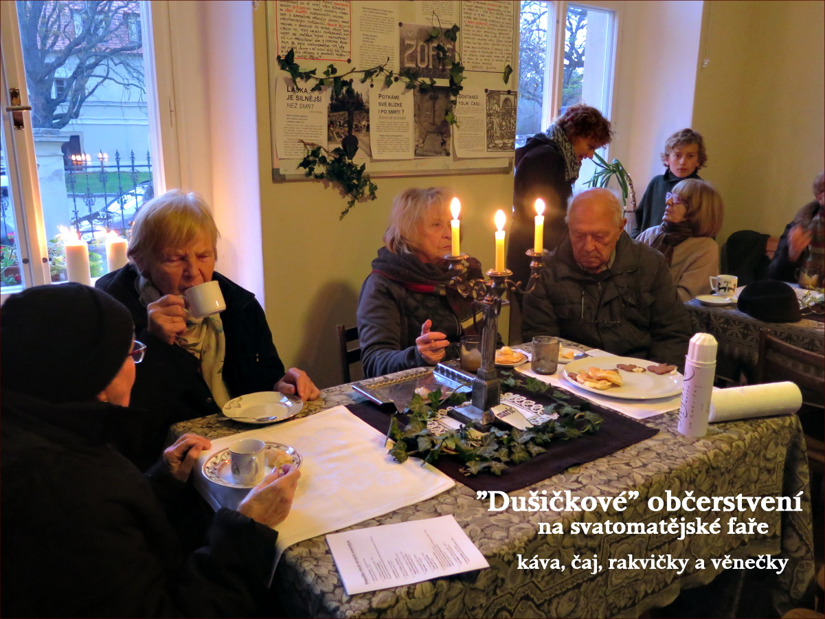 Koncert v kostele sv. Matěje na památku a vyjádření díků všem našim předkům, patronům a svatým za jejich odkaz budoucím generacím. Po koncertě jste zváni ke krátké zastávce na hřbitově u hrobů známých osobností a pak na faru - občerstvení (káva, čaj, věnečky, rakvičky) s diskusí k tématu svátků Všech svatých. a Vzpomínky všech věrných zemřelých.