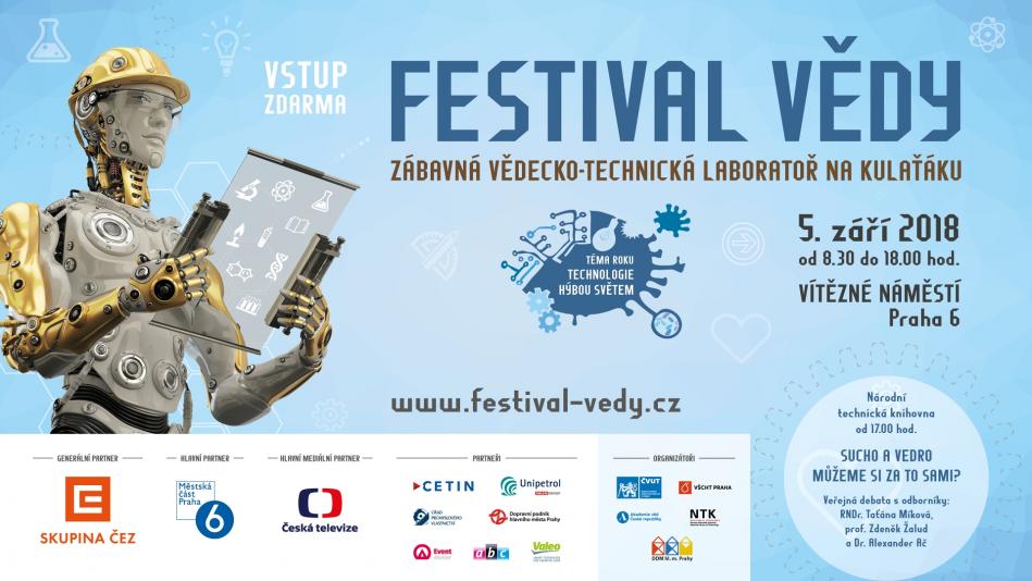 V mnoha venkovních stanovištích na zelené ploše u Vítězného náměstí (Kulaťáku) v Praze 6, v Technické ulici a v prostorách Národní technické knihovny přiblížíme tento, pro mnohé málo známý svět vědy, výzkumu a vývoje. Zjistíte tak, že věda má rozmanité podoby a využití….