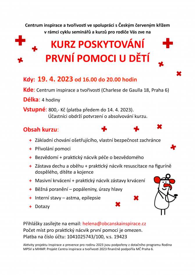 - Místo konání: Centrum inspirace a tvořivosti, Charlese de Gaulla 18