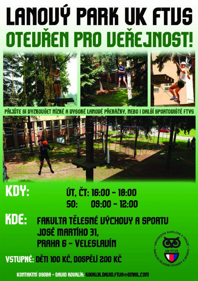 Lanový park je otevřen pro veřejnost každé úterý, čtvrtek a sobotu!