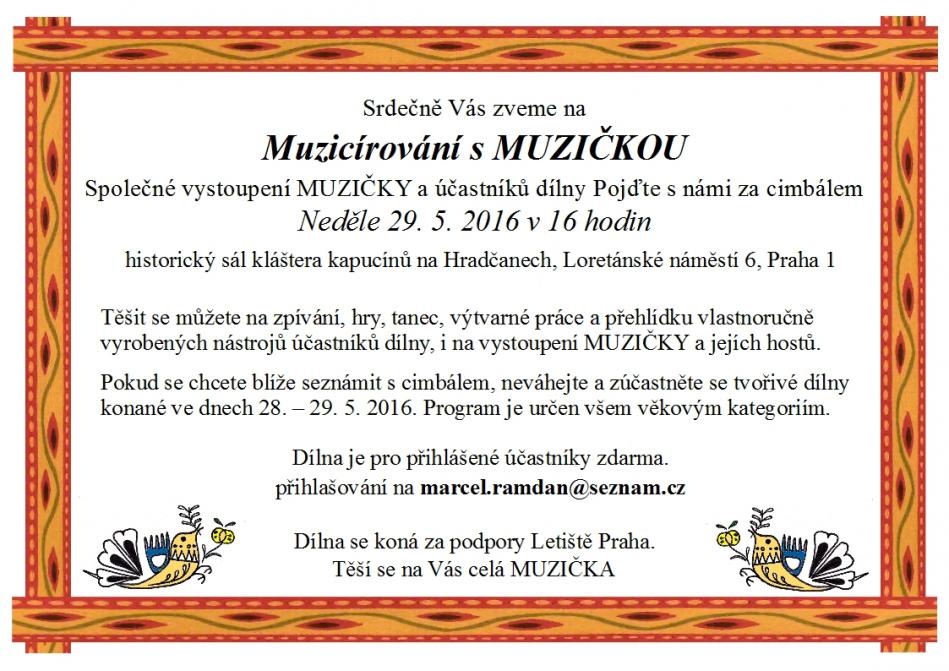 Pokud se chcete blíže seznámit s cimbálem, neváhejte a zúčastněte se tvořivé dílny konané ve dnech 28. – 29. 5. 2016. Program je určen všem věkovým kategoriím.