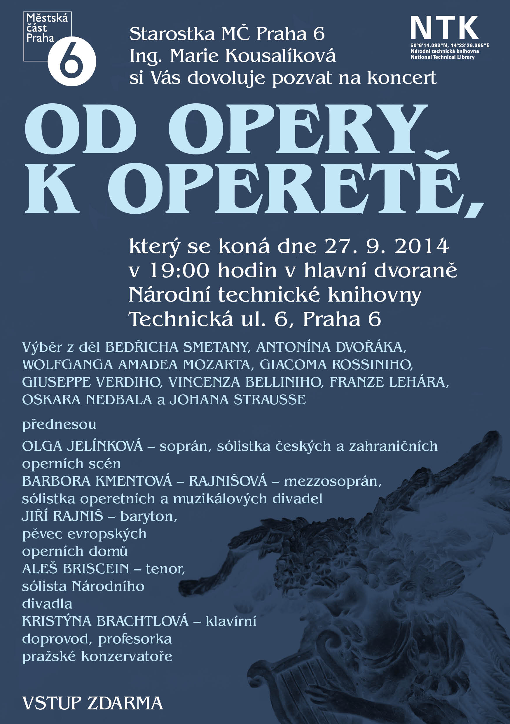 Starostka MČ Praha 6 Ing. Marie Kousalíková si Vás dovoluje pozvat na koncert.