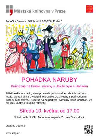 V knihovně Břevnov vám příběh o dívce v dešti, která promoklá jednoho dne zabušila na bránu hradu, zahrají děti z Divadelního kroužku DDM Prahy 6 pod vedením Zuzany Štancelové. Příjde se na ně podívat samotný Hans Christian. Ve hře jsou loutky a tajuplné rekvizity.