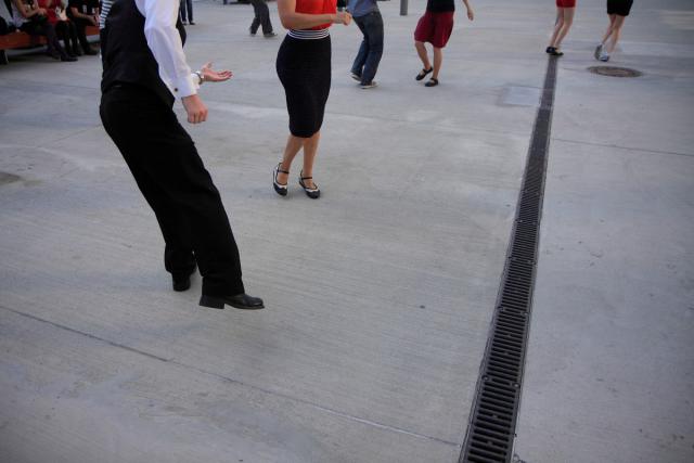 Občanské sdružení Živé město pořádá ve spolupráci s kontejnerovou intervencí K světu pouliční swingovou tančírnu před NTK.