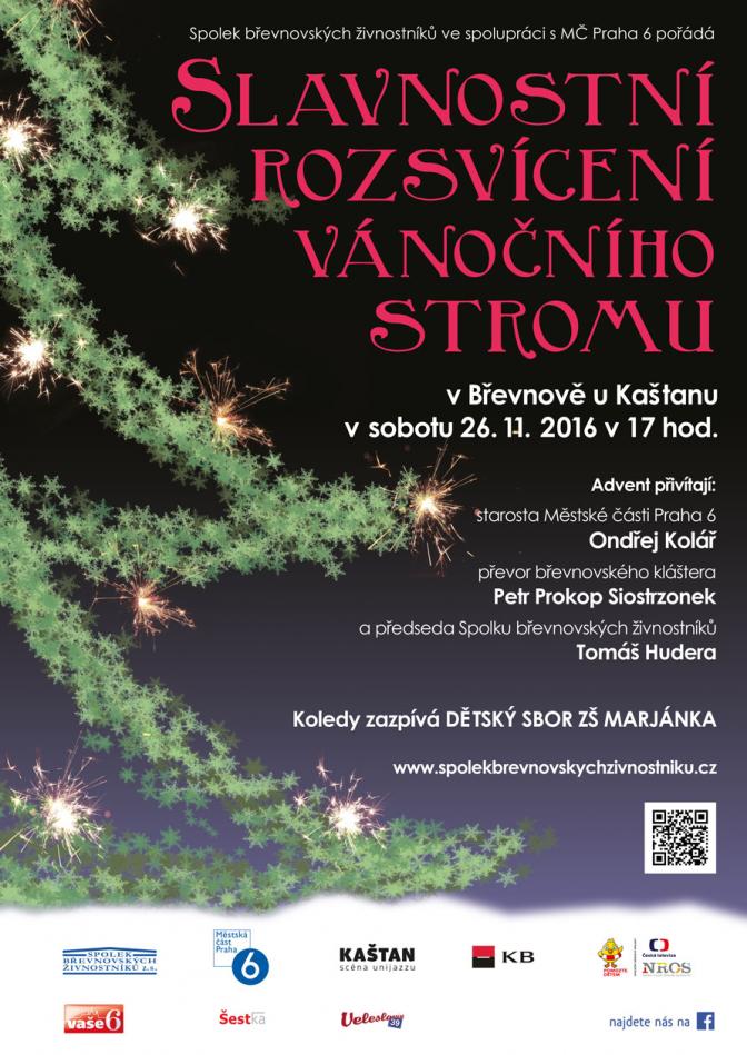 v ulici Bělohorská u Kaštanu. Rozsvícení 26.11.2016 v 17:00, občerstvení již od 16:00. Koledy zazpívá pěvecký sbor ZŠ Marjánka.