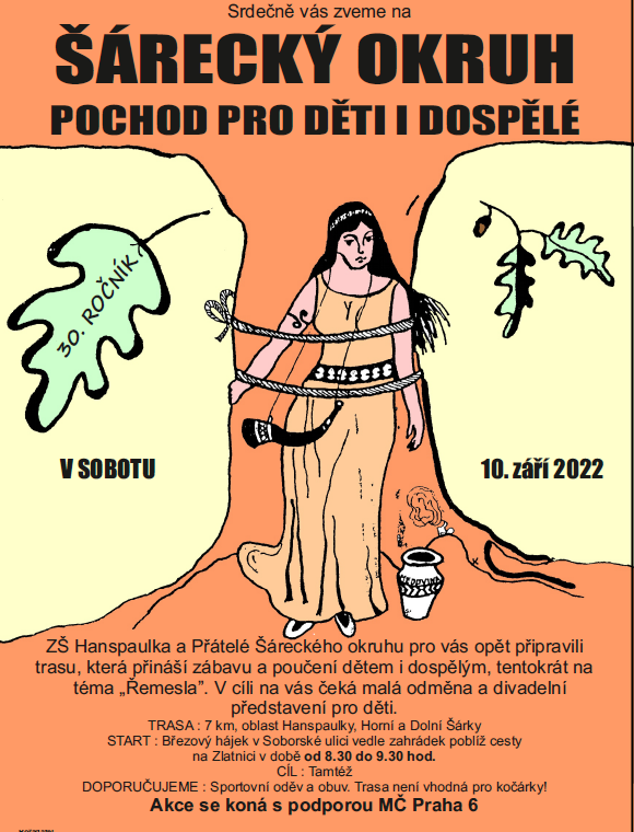 ZŠ Hanspaulka a Přátelé Šáreckého okruhu srdečně zvou na jubilejní 30. ročník pochodu, který přináší zábavu i poučení dětem i dospělým, letos na téma "řemesla". V cíli čeká odměna a divadelní představení pro děti.