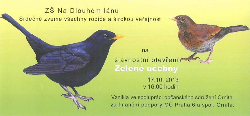 Slavnostní otevření Zelené učebny, která vznikla ve spolupráci s občanským sdružením Ornita a za finanční podpory MČ Praha 6 a spol. Ornita.