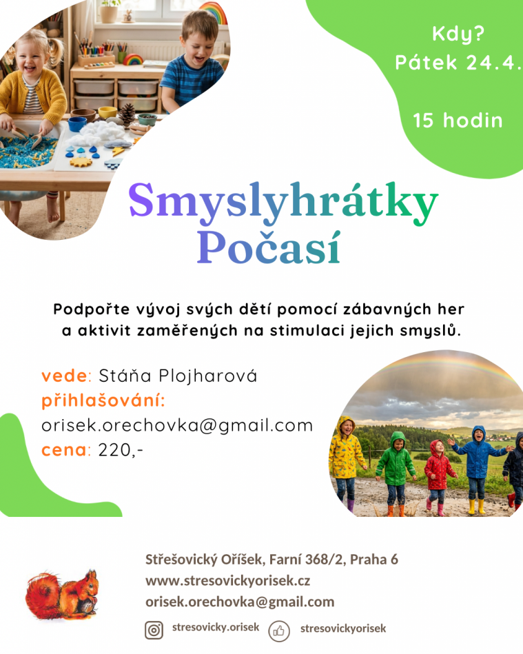 24.04.2026 od 15:00 do 17:00 - Místo konání: Střešovický Oříšek, Farní 368/2, Praha 6