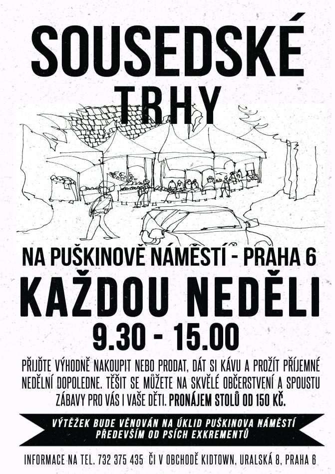 Zveme vás na sousedské trhy na Puškinově náměstí, které pořádáme každou neděli. Kromě možnosti výhodně nakoupit a prodat nepotřebné máte možnost setkat se s ostatními obyvateli Prahy 6 a strávit tak příjemnou neděli.