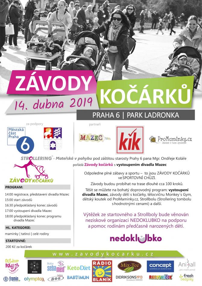 Letošní pražský ročník Závodů kočárků se koná ve sportovně-rekreačním areálu Ladronka na Břevnově a opět si můžete toto zábavně sportovní odpoledne užít společně s divadlem Mazec. Celý výtěžek ze startovného bude věnován neziskové organizaci Nedoklubko, která pomáhá a podporuje rodiny nedonošených dětí.