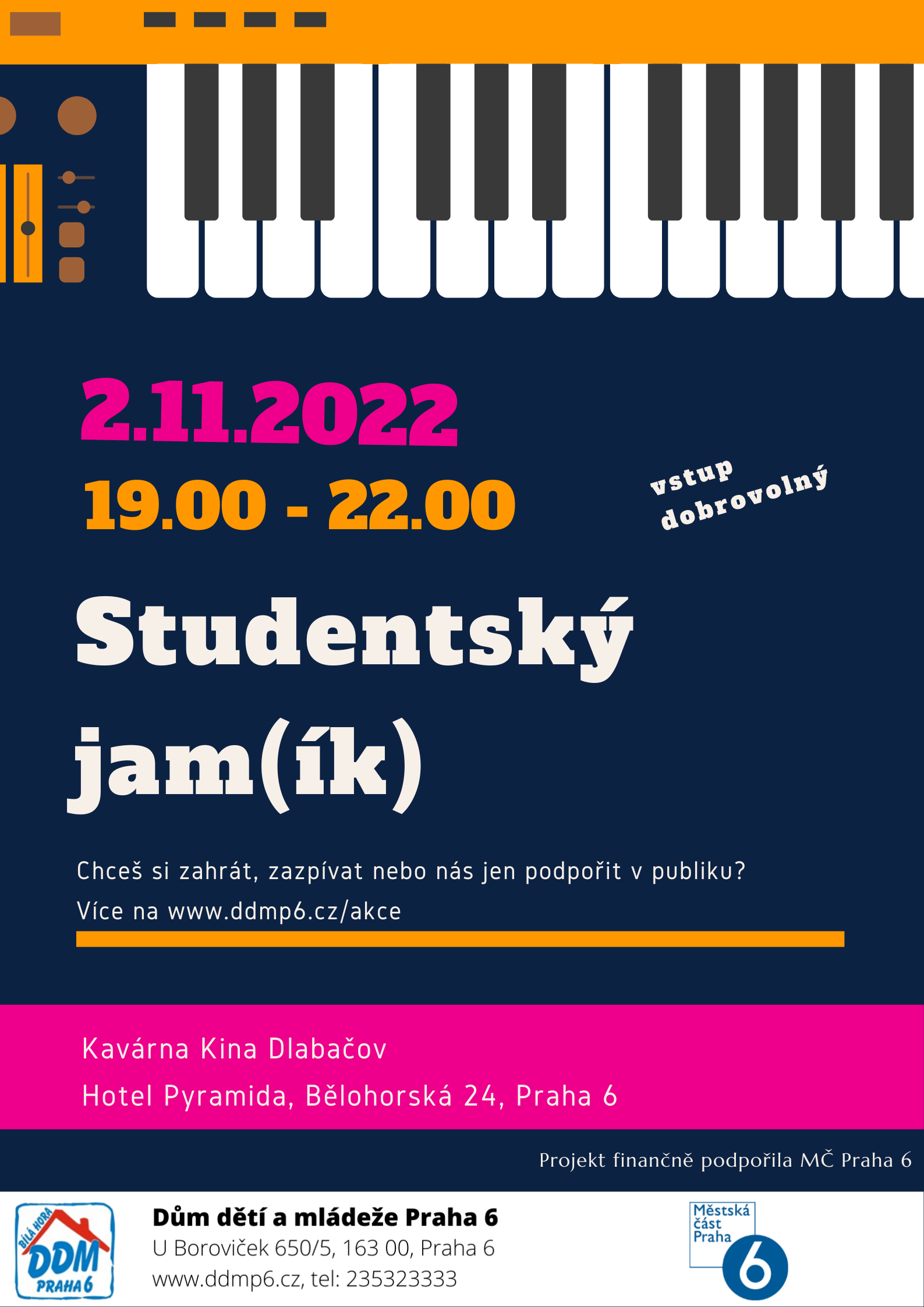 - Místo konání: kavárna kina Dlabačov, Bělohorská 24