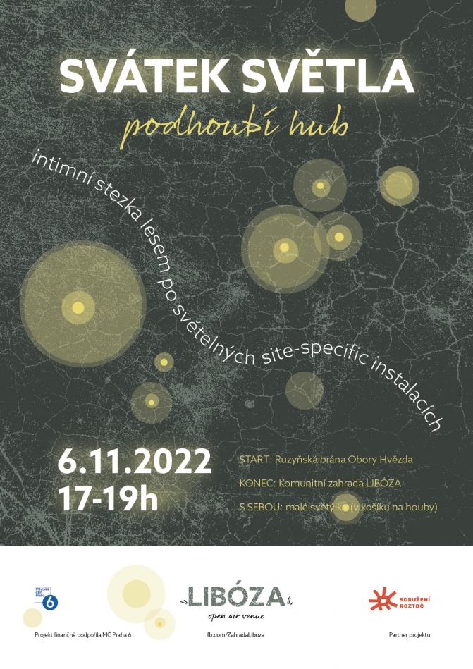 Svátek světla je tichým průvodem či procházkou po výtvarně laděné stezce, který pořádá sdružení Roztoč v Roztokách u Prahy už po několik let. Letos poprvé vzniká i v Liboci, připravují ho pro vás výtvarníci z Liboce, Petřin a okolí, děti z MŠ Sbíhavá, Lesního klubu Malejov a ZŠ Petřiny Sever, ve spolupráci se sdružením Roztoč a roztockými výtvarníky.