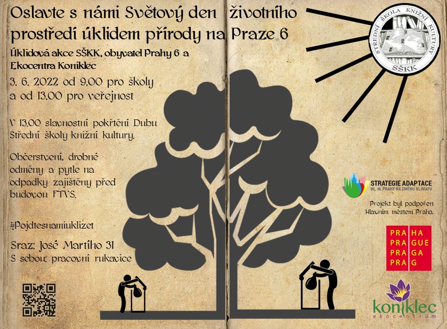 Od 9 jsou zvány školy z MČ Praha 6. Od 13 hodin veřejnost. Ve 13 hodin proběhne slavnostní pokřtění dubu, který zde zasadili studenti Střední školy knižní kultury v rámci projektu Adaptace Prahy na změnu klimatu (https://evp.adaptacepraha.cz/). Účastníci na místě dostanou pytle a mapu s vyznačeným územím, které mohou uklidit. Pro brigádníky budou připraveny drobné odměny a občerstvení. Pracovní rukavice si prosím vezměte s sebou. Těšíme se na Vás!