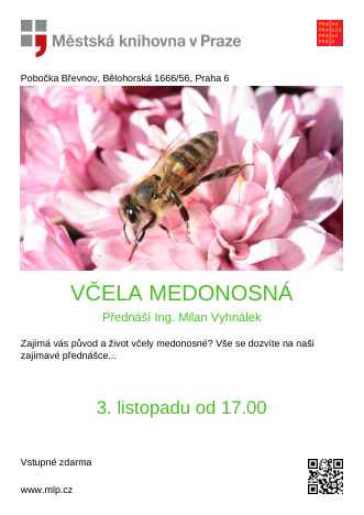 Chtěli byste vědět více o původu a životě včely? Přijďte na naši přednášku do knihovny na Bělohorské.