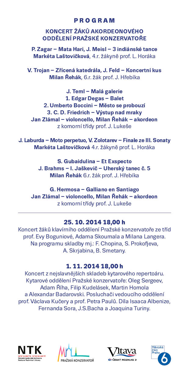 Koncert studentů Pražské konzervatoře akordeonového oddělení.