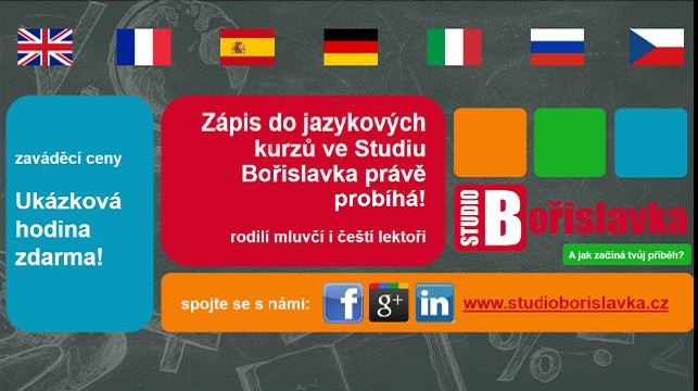 - Další informace: http://www.studioborislavka.cz/vzdelavani-jazykove-kurzy.php