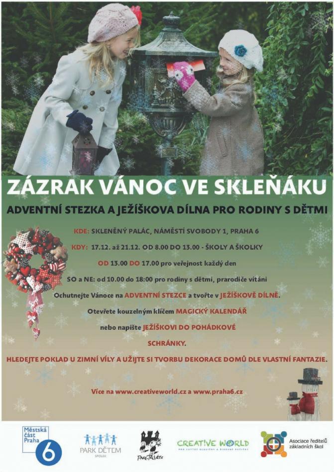 V adventních truhlách si děti najdou vánoční poklad v podobě drahokamů a zlata. Pohádkové dobrodružství se zimní vílou si hradí návštěvník. Venkovní část před Skleňákem využijeme k pozvání návštěvníků jedním interaktivním stanovištěm Adventní stezky dovnitř. Také krásné dekorace pobídnou k návštěvě a společnému rodinnému prožitku.