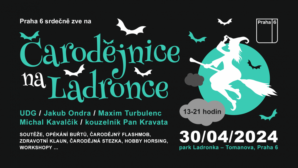Na největší čarodějnickou párty se 30. dubna na Ladronku sletí české hudební hvězdy kapely UDG, Maxim Turbulenc a zpěvák Jakub Ondra. Malí čarodějové se mohou přiučit magii od kouzelníka Kravaty a vyzkouší si své magické schopnosti v zábavných úkolech na Kouzelné stezce. Akce pořádaná městskou částí Praha 6 je pro návštěvníky zdarma.