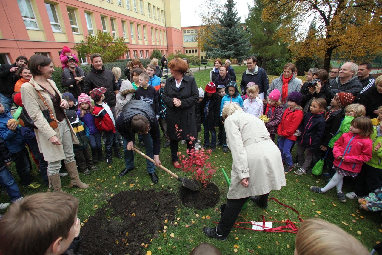 Starostka pak společně s ředitelkou školy Annou Jelínkovou, Ondřejem Balatkou, radním Prahy 6 pro oblast školství a meteoroložkou Dagmar Honsovou zasadili v zelené učebně japonský červený javor.