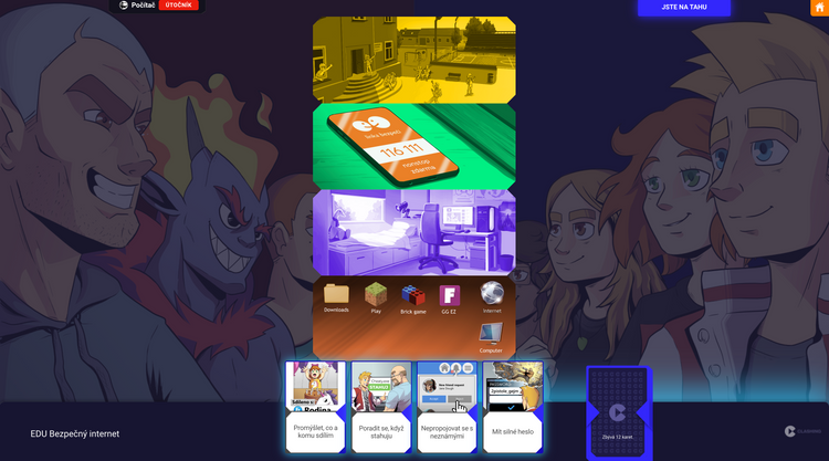 Platforma CLASHING je inovativní hravé školení, které si klade za cíl měnit návyky a posilovat povědomí o rizicích v oblasti kybernetické bezpečnosti, a to formou karetní hry. Jeho verze Clashing EDU využívá online prostředí s prvky moderních deskových a karetních her, kde si žáci mohou vyzkoušet role oběti i agresora a nacvičit obranné strategie.