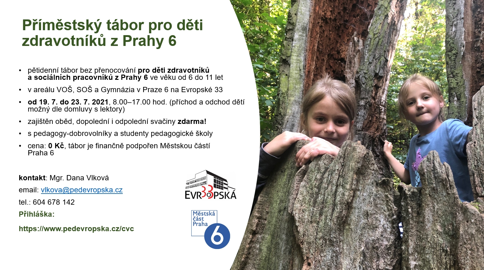 „Příměstský tábor chystáme jako poděkování zdravotníkům a sociálním pracovníkům z Prahy 6 za jejich obětavou práci během pandemie. Tábor bude zcela zdarma právě jako výraz našich díků. Je to možné jenom díky tomu, že na stravování přispěla městská část Praha 6,“ doplňuje ředitel VOŠPS, SOŠPS a Gymnázium Evropská 33.
