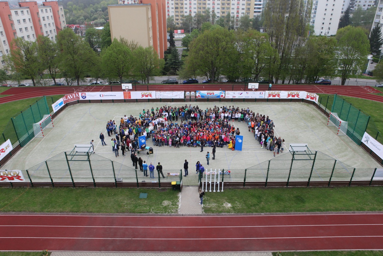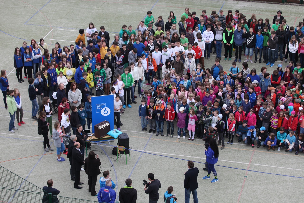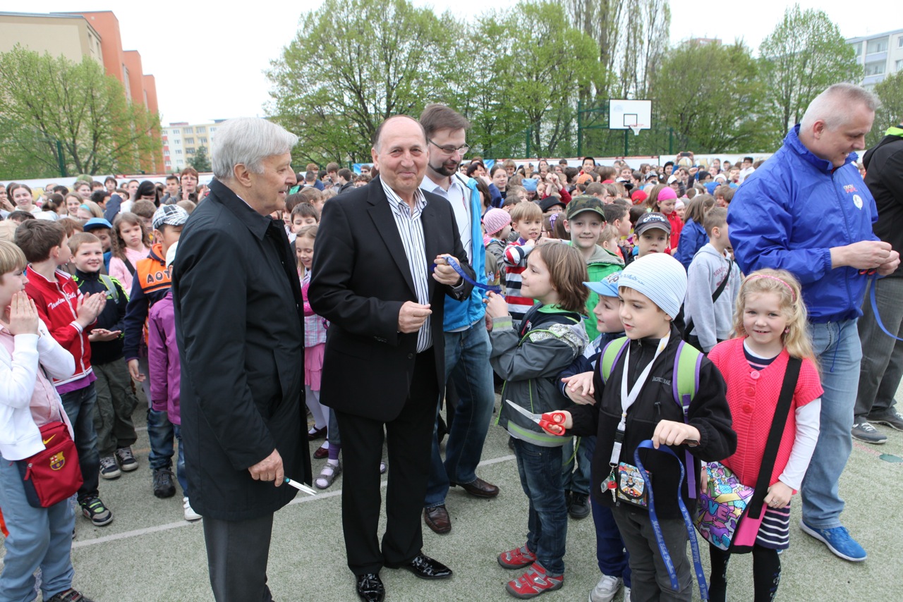 Slavnostnímu přestřižení pásky přihlížely stovky žáků školy a mezi nimi také ti, kteří se hned poté zapojili do okresního kola pro Prahu 6 v akci Odznak všestrannosti olympijských vítězů.