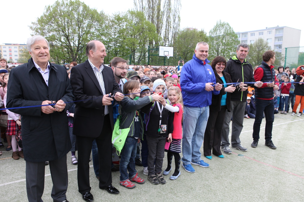 Sportovní legendy otevřely dětem ZŠ a MŠ Červený vrch nově zrekonstruované hřiště