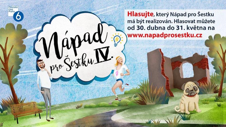 Od 30. dubna do 31. května mohou obyvatelé Prahy 6 hlasovat o realizaci nápadů v rámci participativního rozpočtu Nápad pro šestku. Lidé mohou vybírat z osmnácti projektů, které postoupily do závěrečného hlasování čtvrtého ročníku. Hlasování probíhá online.