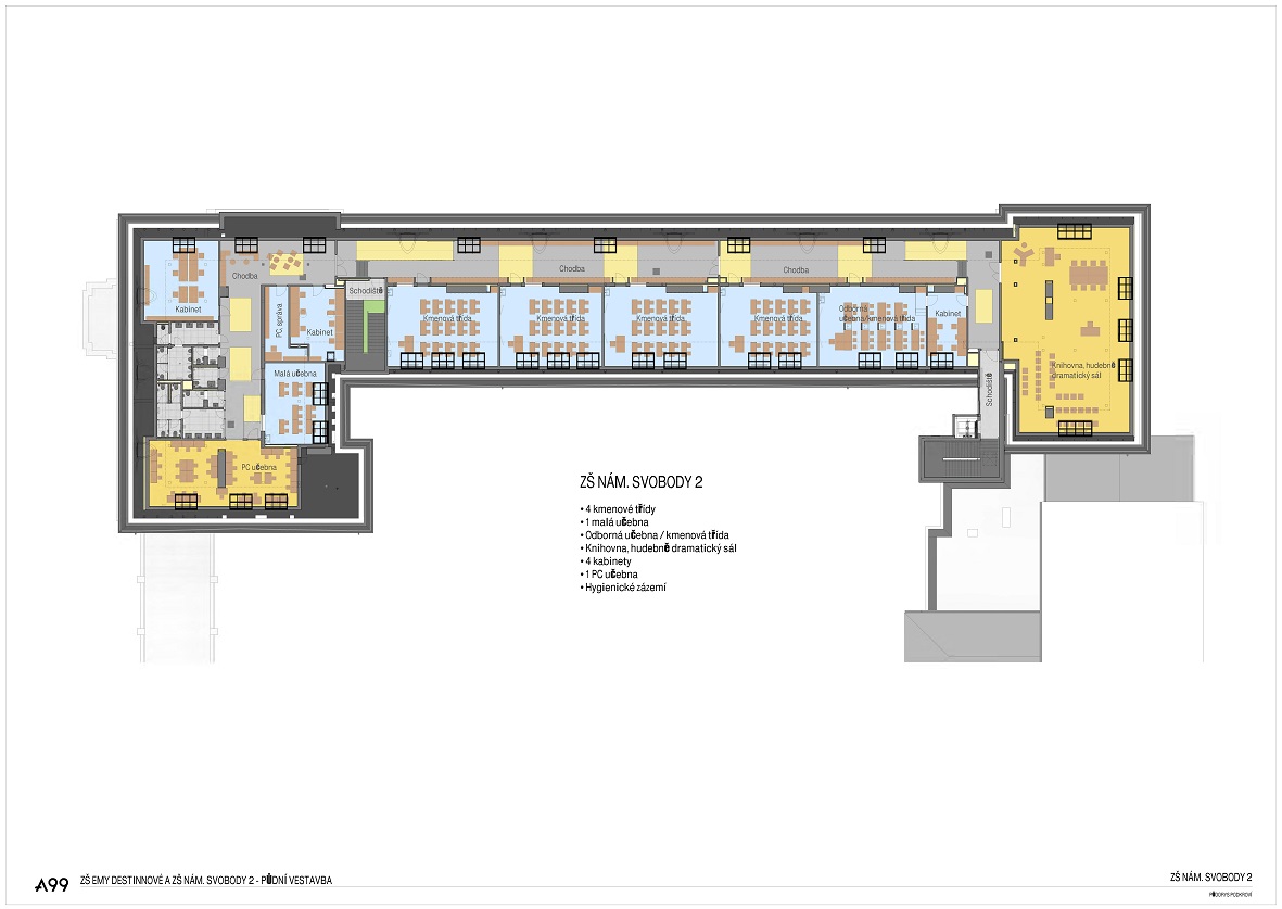 V základních školách dojde k navýšení kapacity o 240 žáků díky tomu, že v půdních vestavbách vzniknou kmenové třídy, odborné učebny, studovny, knihovna, herna, keramická dílna, PC učebna, kabinety a odpovídající hygienické zařízení.